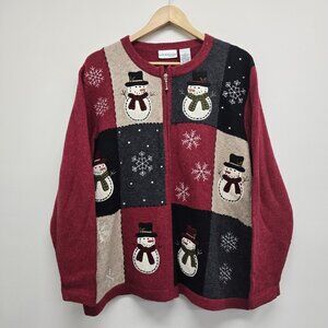 VTG Croft & Barrow Cardigan Sweater Christmas Snowman Angora Wool Blend 1X