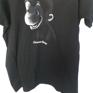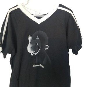 VTG Cronies Mens XL Black Short Sleeves V-Neck Curious George Monkey Tee Shirt