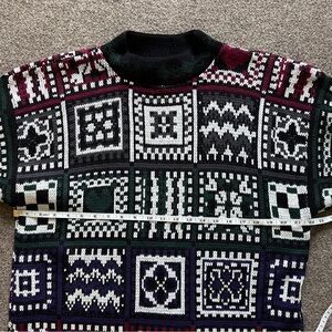 VTG Croquet Club Quilt Patchwork Pullover Mock Neck Sweater Knit Size L USA Made