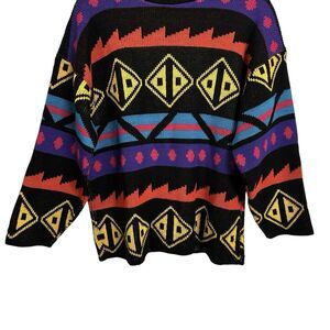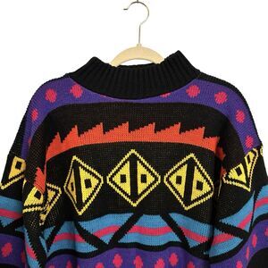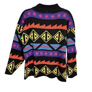 VTG Croquet Club Womens Sz L Geometric 80s 90s Retro Sweater Granny Core USA. Long sleeves, mock neck, pullover, knit. Light signs of wear as seen in pictures but in overall good condition. 100% acrylic. Made in USA.