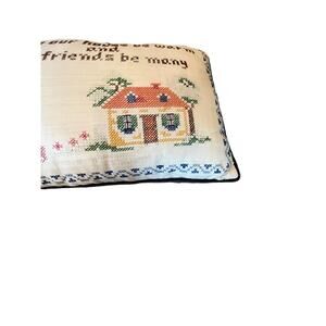 VTG Cross Stitch Pillow “May Our House Be Warm & Our Friends Be Many” 11x15