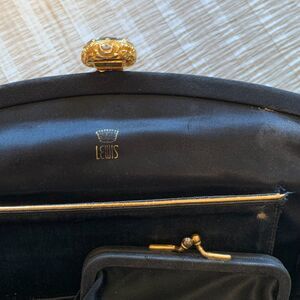 VTG Crown Lewis Black Evening Clutch & Change Purse Set Gold Latch Formal