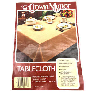 VTG Crown Manor Tablecloth 60" X 84" Brown Minimalist Cottagecore Cabin USA New