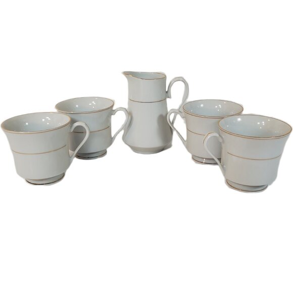 VTG Crown Ming Regent Collection Fine China 4 Teacups & Creamer Gold Trim Set