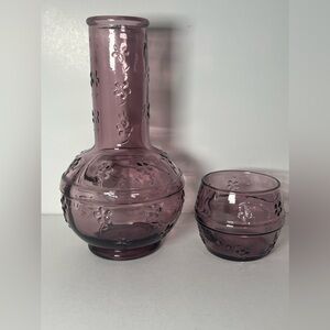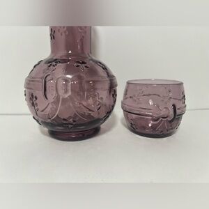 VTG Crownford Giftware Purple Amethyst Glass Decanter & Cup Made in ITALY 1983