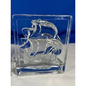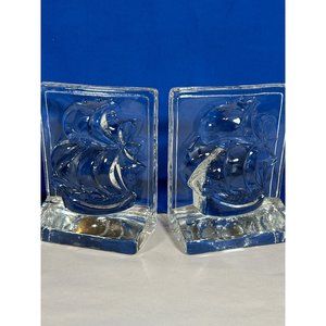 VTG Crystal Clipper Sailing Ship Schooner Bookends New Martinsville 3D Maritime