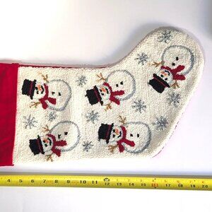 VTG Crystal Snow Needlepoint Christmas Stocking Snowman Snowflakes 20"