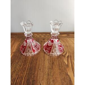 VTG Crystal Taper Candleholders - Ruby Red Cut Glass - Set of 2