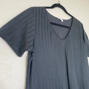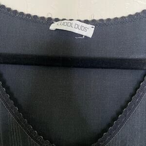 VTG Cuddl Duds Black Made in USA Striped Pajama Top Large