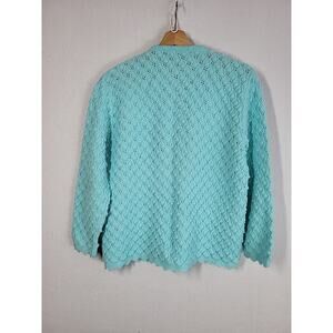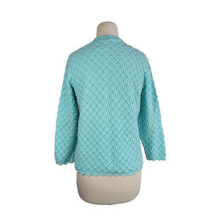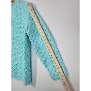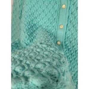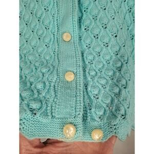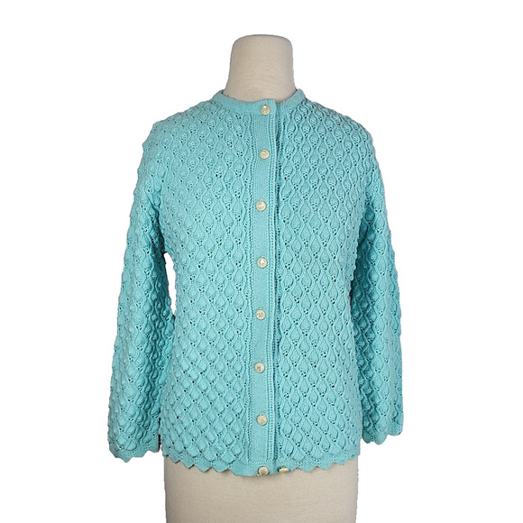 VTG Cuddle Knit Cardigan Sweater M Blue Nubby 60s Cottage Coquette Rockabilly
