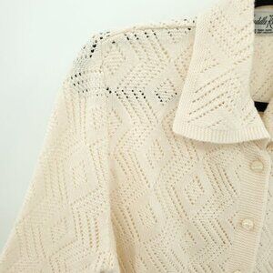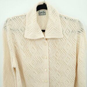 VTG Cuddle Knits Button Front Pointelle Cardigan/Knit Top L/XL Ivory
