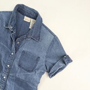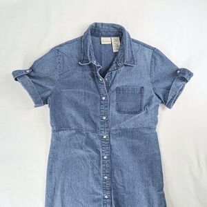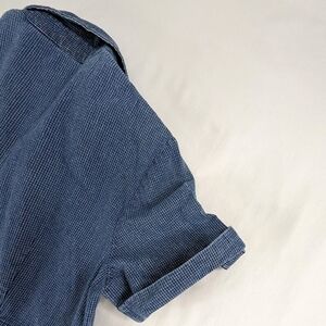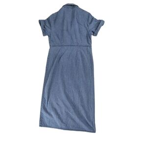 VTG Cuff Short Sleeve Maxi Denim Shirt Dress Check Print Blue