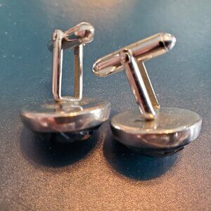VTG Cufflinks & Tie Tack Signed Swank Black Hematite? Silver Tone Dome Faceted