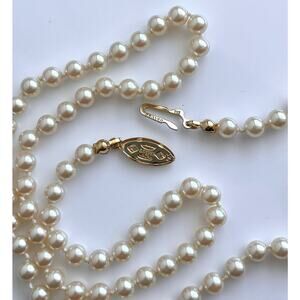 Vintage Cultured PEARL NECKLACE 20" German Silver Knotted 62 Pearls 5mm Gold Filigree Fish Hook Clasp - Excellent Condition!