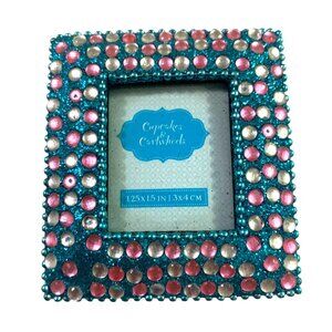 VTG Cupcakes & Cartwheels Micro Picture Frame Blue Pink Crystals 1.25x1.5 Photo