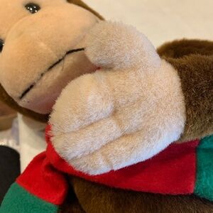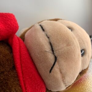 Please note that it shows a few flaws from age including a few small marks on his beanie, some marks on his hands and leg, and some of the thread on his mouth needs to be re-sewn, but he is in good condition overall.