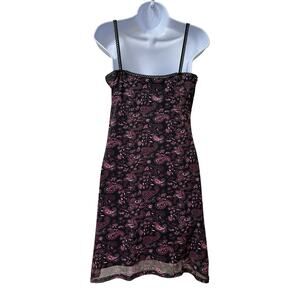 VTG Currants Paisley Mesh Sheer Babydoll Mini Dress Size L Whimsigoth Fairy Y2K