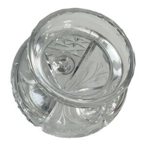 VTG Cut Crystal Condiment Jar with Spoon Notch – Footed Bohemian Style – Molded