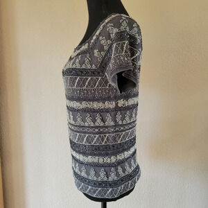 VTG DANA BUCHMAN Grey BEADED Square Neck Rayon/Nylon Short Sleeve Blouse