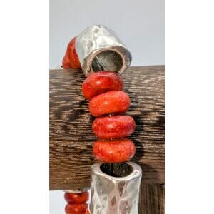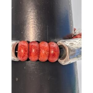VTG DANON Made in Israel Signed Coral Silver Plated Beaded Toggle Clasp Bracelet