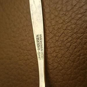 The VTG David Andersen Norway Sterling 925S Blue Bell Floral Collector's Spoon is a collectible spoon crafted by the renowned Norwegian silversmith David Andersen. Made from high-quality sterling silver (925S), this spoon features an intricate bluebell floral design, a hallmark of Andersen's exquisite craftsmanship. Ideal for collectors of fine silverware or those with an appreciation for Scandinavian design, this piece combines both functional use and artistic value, making it a cherished addition to any collection.