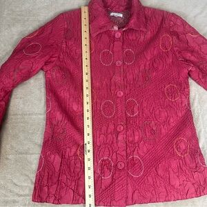 VTG DB Sport Crinkle Shacket Blazer Wms L Glitter Buttons Satin Lined Geometric