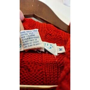 This vintage Doncaster Sport sweater is a must-have for any fashion-forward woman. The wool blend fabric is heavy and breathable, perfect for the winter and fall seasons. The sweater features a V-neckline and button strap accents, adding a touch of elegance to the classic cable-knit design. With a size of medium, this sweater is perfect for any occasion, whether it be travel, casual wear, workwear, or business attire. The sweater also has pockets for added convenience and comes in a beautiful red color. The sweater is a true representation of the 90s fashion trend and is perfect for any sports or outdoor activity.