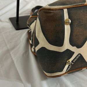 VTG DOONEY AND BOURKE GIRAFFE ANIMAL PRINT CANVAS/LEATHER TOTE SHOULDER BAG