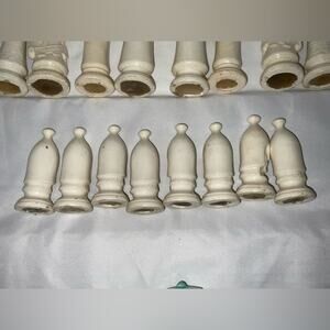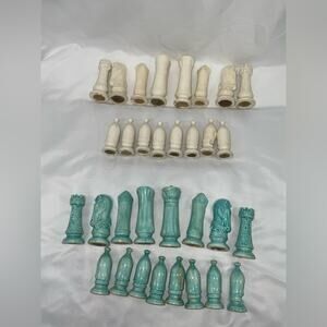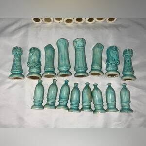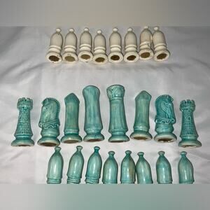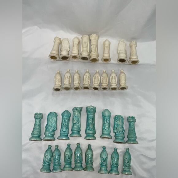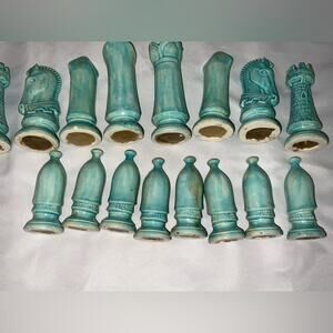 VTG DUNCAN MEDIEVAL CHESS SET GLAZED TURQUOISE WHITE CERAMIC COMPLETE 32 PIECES