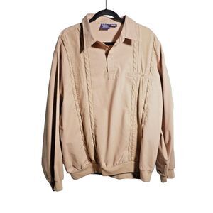 VTG Dad Grandpa Cable Knit Collared Sweatshirt Tan Polo Top Mens 2XL Golf 90s