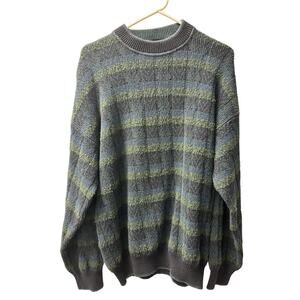 VTG Dad Style Stripe Pattern Sweater Adult XL Blue And Green Geoffrey Beene Y2K