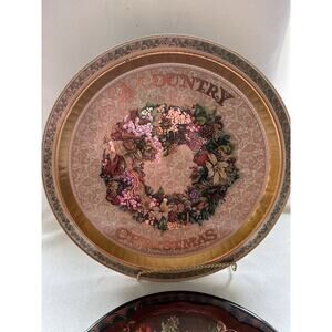VTG DAHER DECORATED WARE VANITAS PAINTING 13” ROUND METAL TRAY ENGLAND/WREATH