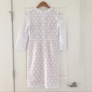 VTG Daisy Floral Eyelet Mod Sheath Dress Wedding High Neck Long Sleeves
