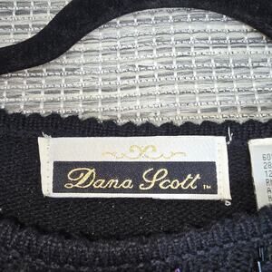 VTG Dana Scott Sweater Womens Large Black Iridescent Beaded Swirl Silk Wool Knit