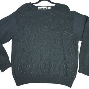 VTG Dana Scott Sweater Womens Large Black Iridescent Beaded Swirl Silk Wool Blend Knit Long Sleeve