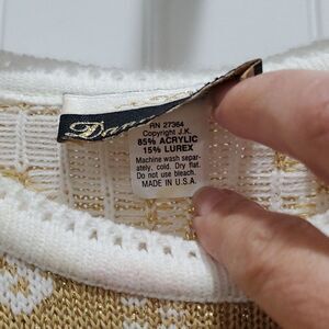 VTG Dana Scott White & Metallic Gold Holiday Pull Over Sweater S…, No Size Listed, Measurements are