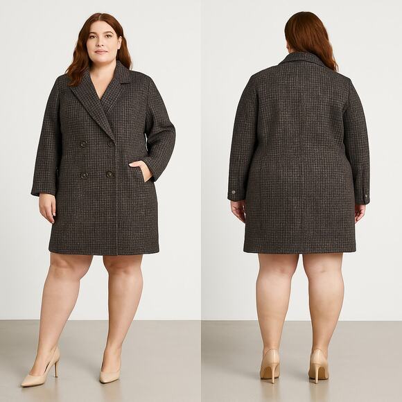 Dani Colby Brown Tweed Wool Blend Coat Womens 24W Double Breasted Classic Winter