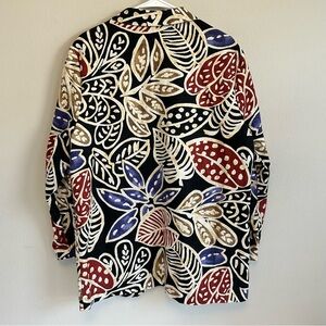 VTG Danielle B Linen Cotton Multicolor Leaf Print Large Summer Blazer Made USA