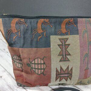 VTG Danny K American Tapestry Crossbody Zipper Purse Kokopelli Rust Brown 10x7"