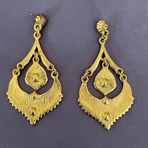 These are really pretty with light pink enamel that swings inside dark pink, adorned with four sparkling pink and red rhinestones.