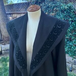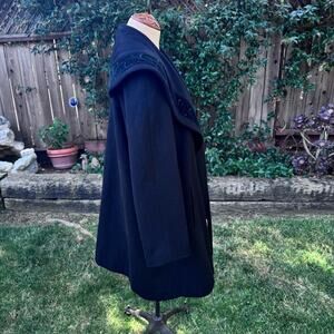 VTG David Benjamin Black Wool Blend Coat Embroidered Collar Women's 6 *FLAWS*