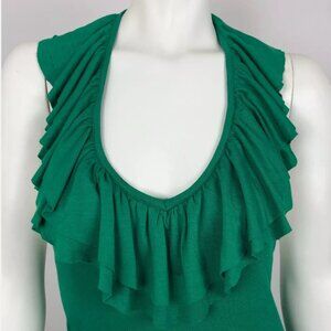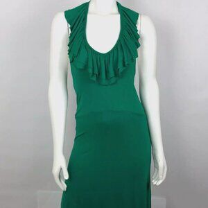 VTG David Bitton Green Halter Summer Dress | Ruffle Detail | Size SP (Small Petite) | Retro | Y2K