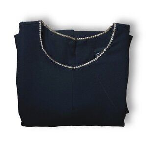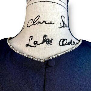 VTG David Rose Midi Dress Womens Sz XL Black Rhinestone Trim Collar Crepe Tent