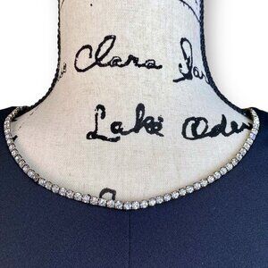 This vintage David Rose crepe tent midi dress, size XL, boasts a classic black color and an exquisite rhinestone trim collar. In excellent used condition, this retro 90's style evening dress is a timeless addition to any woman's wardrobe.