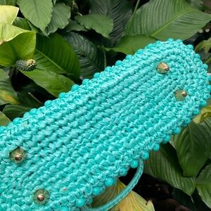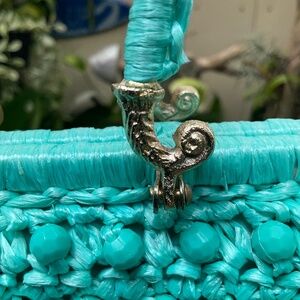 VTG Dayne Taylor Teal Colored Beaded Straw Purse From 60’s