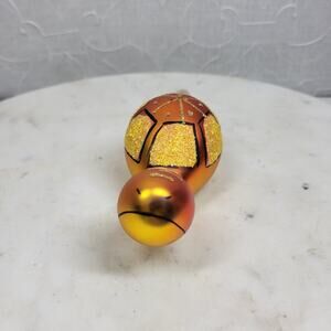 Eye-catching turtle ornament for your Christmas tree or holiday decor. This vintage figurine features a charming hand-painted design with intricate gold detailing and sparkling glitter accents on its shell.