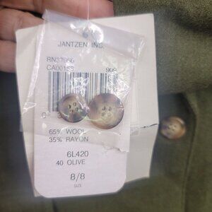 VTG Deadstock Jantzen Classics Olive Green Wool Blazer Embroidered Pocket Size 8