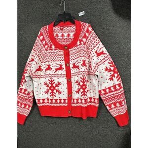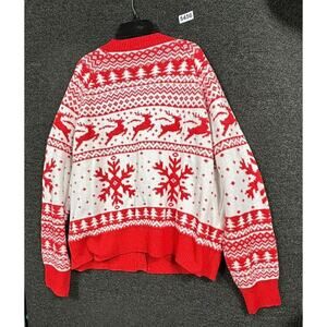 VTG Dec 25th Red & White Christmas Cardigan Sweater Button Up Long Sleeve XXL