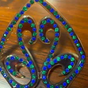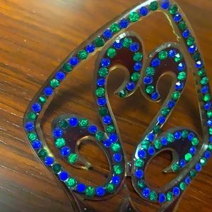 Beautiful complete vintage hair comb. Combined both green and blue rhinestones. All complete! None missing! Bright and sparkly! Amazing for its age. ❤️