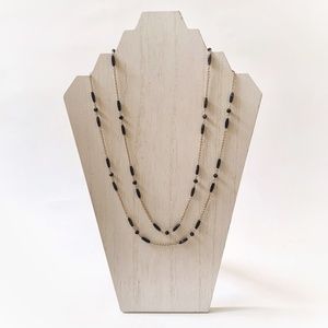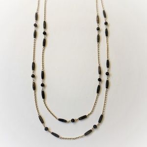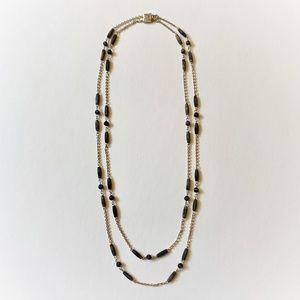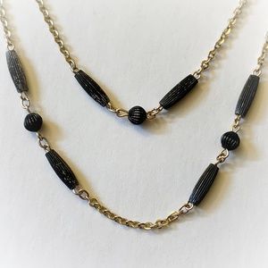 VTG Deco Style Gold Wash Sterling Black Bead Double Strand Necklace